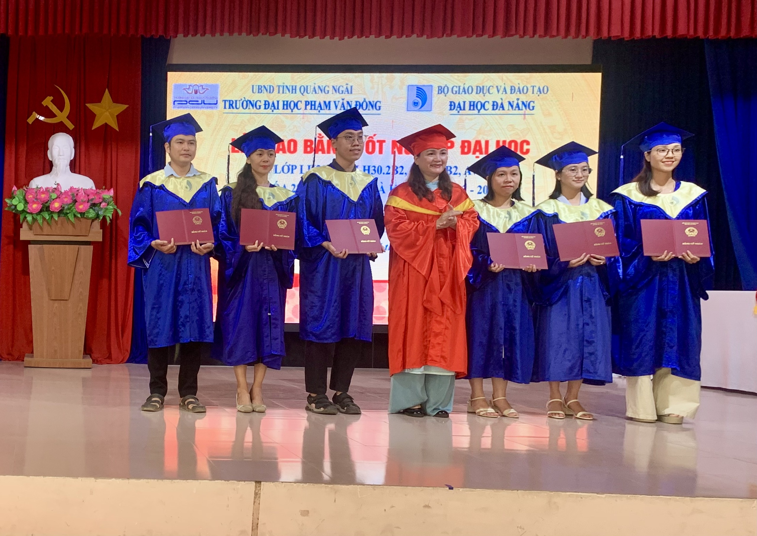 Ngày 07/06/2025, Trường Đại học Phạm Văn Đồng và Đại học Đà Nẵng phối hợp tổ chức Lễ trao bằng tốt nghiệp ngành Ngôn ngữ Anh và Luật cho sinh viên khoá 28 và 30 - Hình thức đào tạo từ xa trực tuyến.